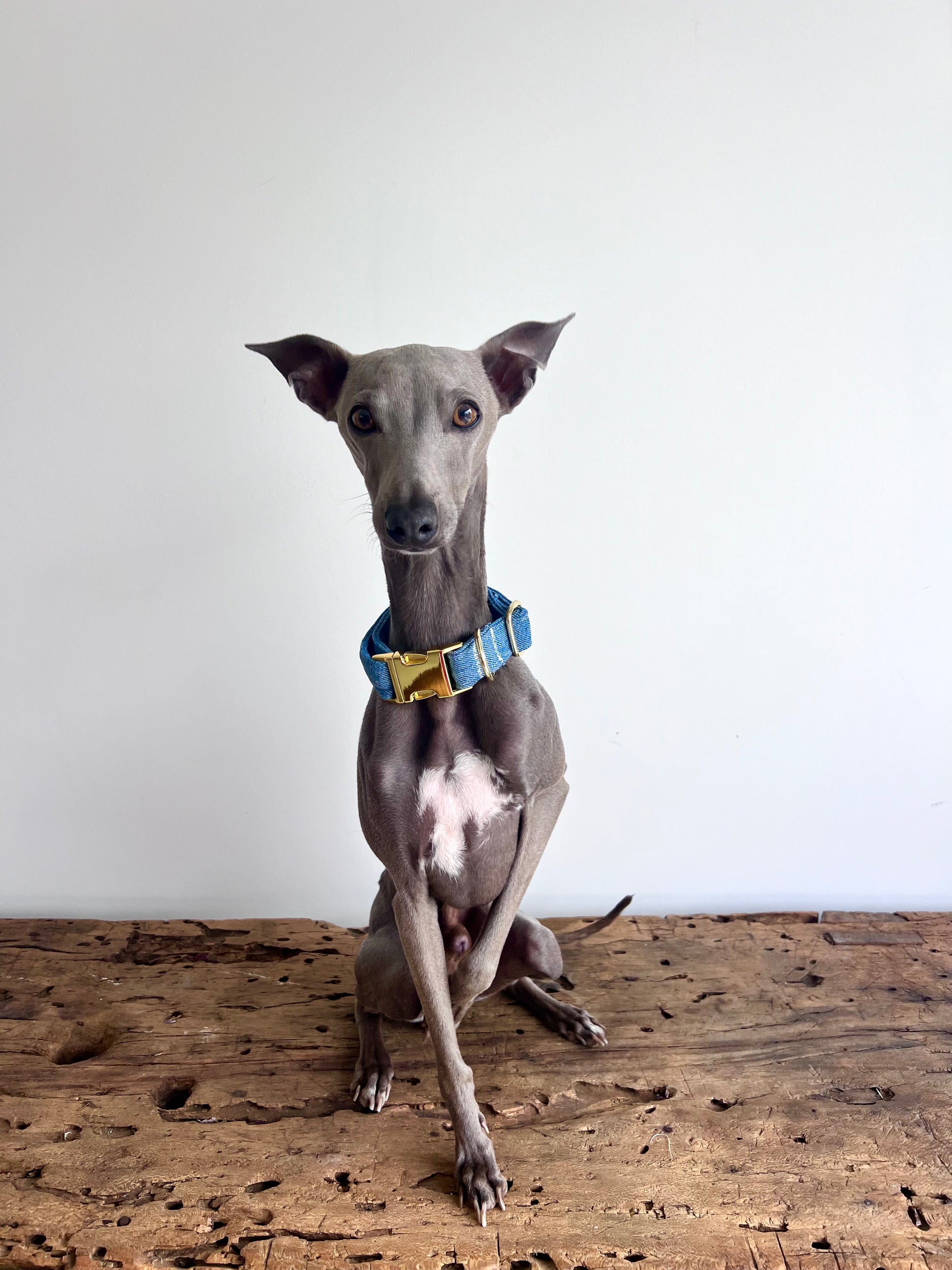 Notre collier pour chien Bleu Jean est fabriqué entièrement à la main par nos soins.