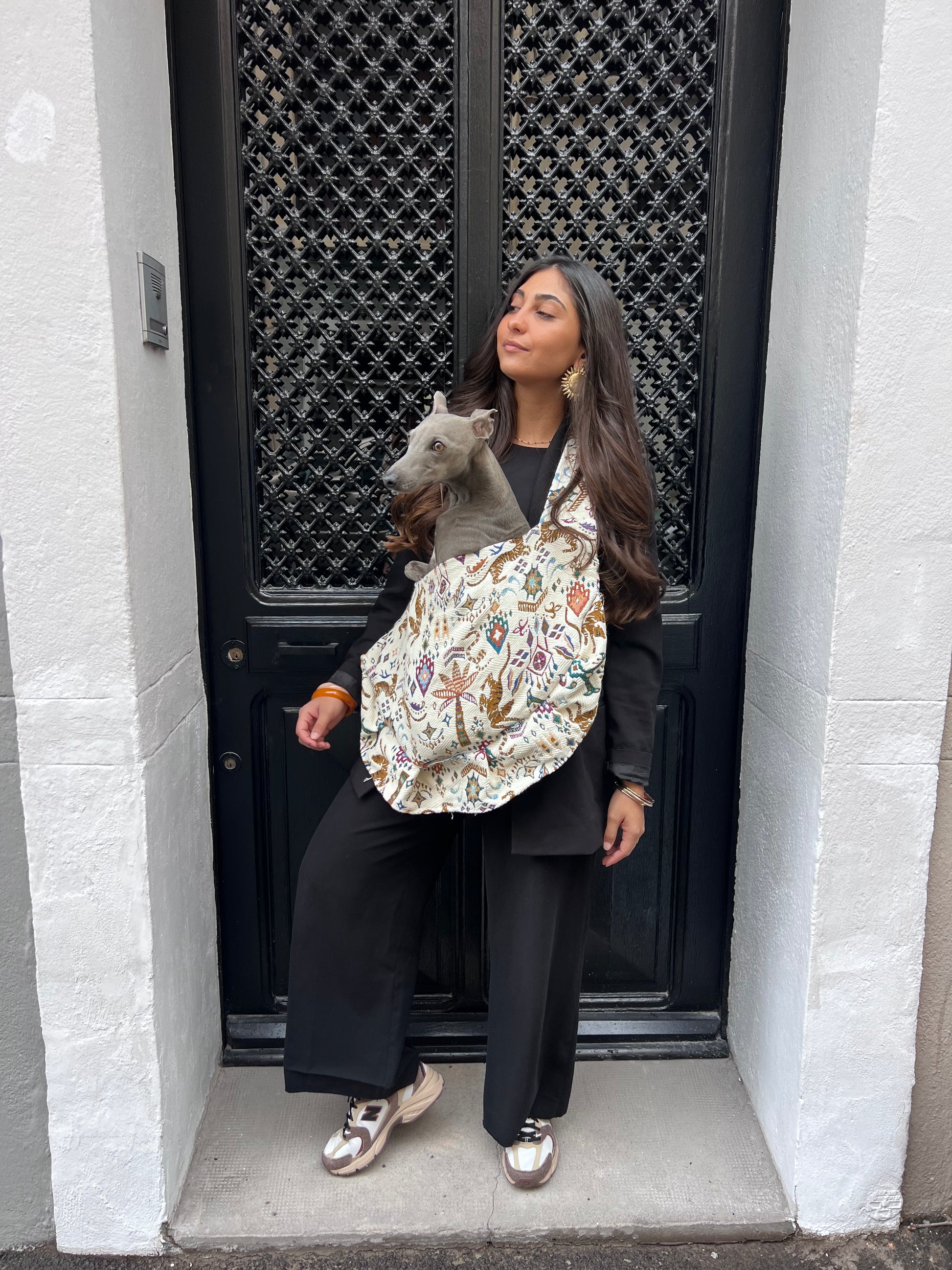 Sur le modèle il s'agit d'un sac pour chien de moyenne taille.